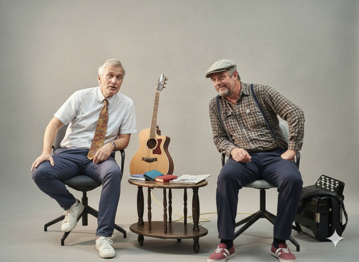 « Viens chez moi, j’habite chez une mamie », raconte les tribulations de deux frères, plutôt mûrs, pour ne pas dire largement retraités, qui jouent de la musique, qui ronchonnent, surtout l’aîné parce que sa fille et son frère lui suggèrent d’accueillir un jeune.